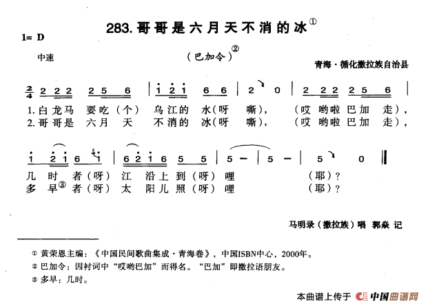 关于《哥哥是六月天不消的冰》曲谱的评论