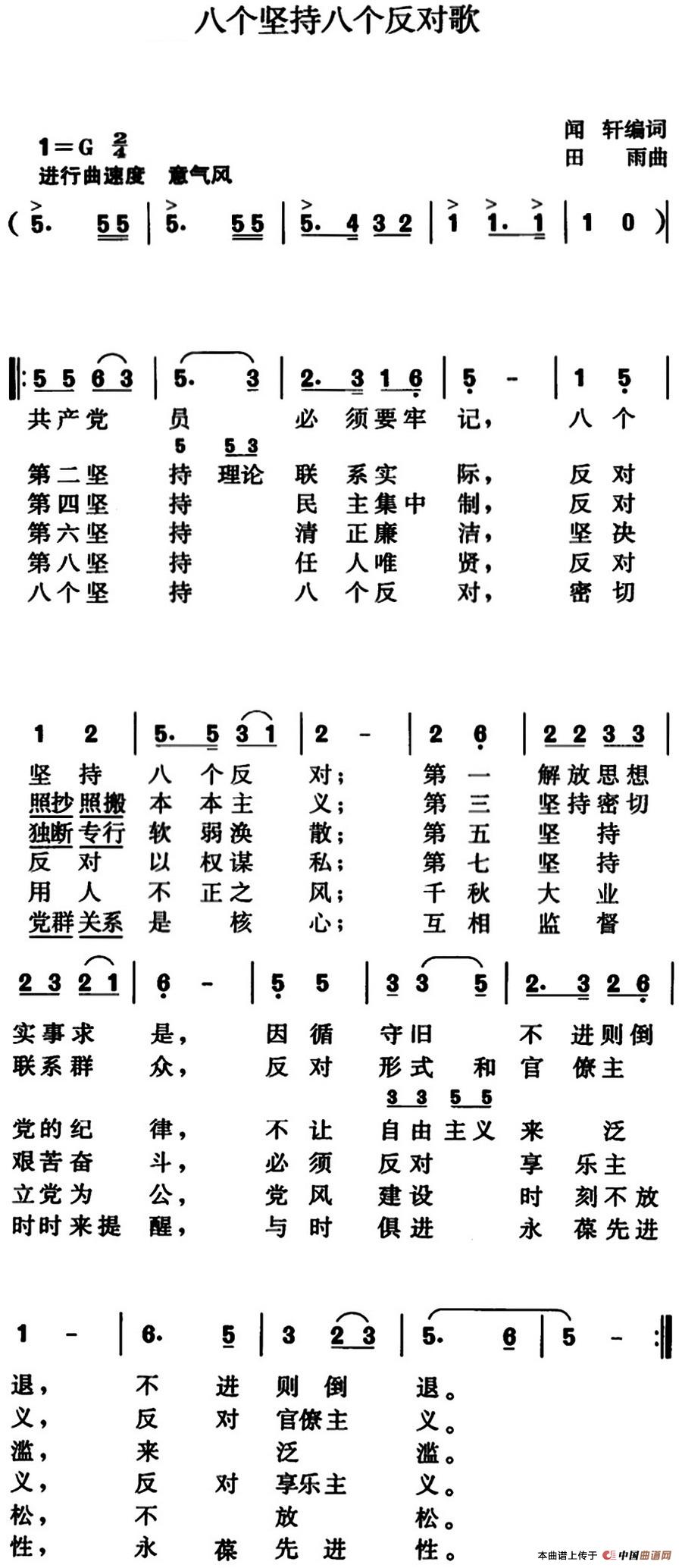 八个坚持八个反对歌(闻轩编词、田雨曲)