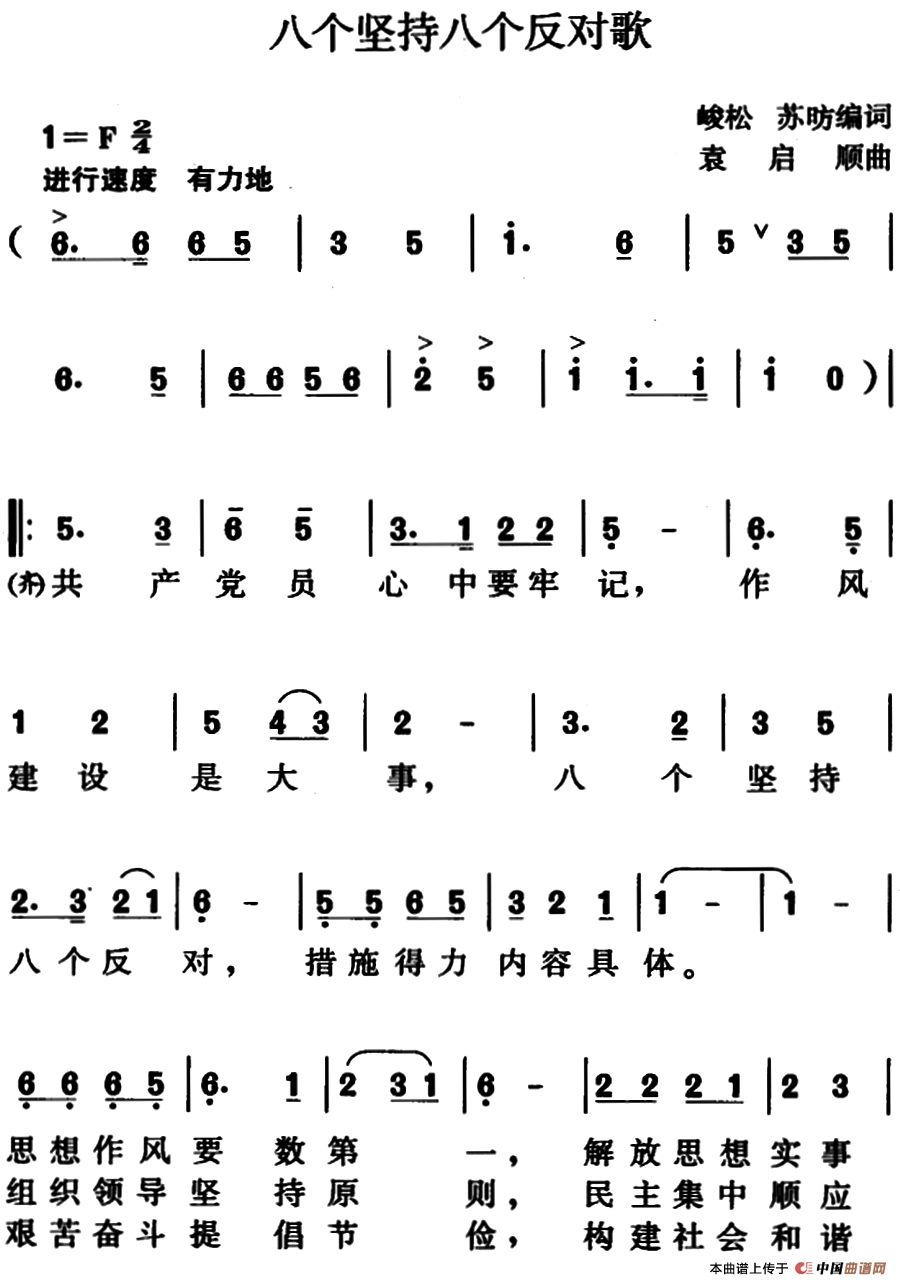 八个坚持八个反对歌(峻松、苏昉编词、袁启顺曲)