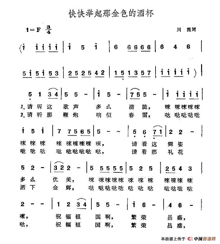 关于《快快举起那金色的酒杯》曲谱的评论