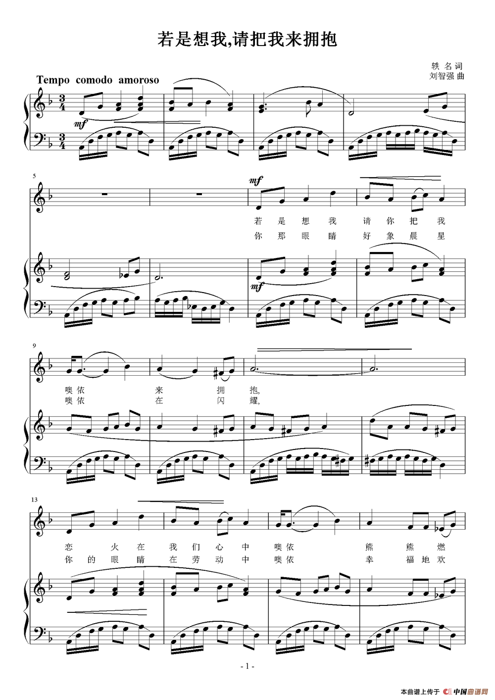 关于《若是想我,请把我来拥抱》曲谱的评论