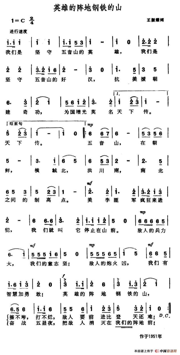 关于《英雄的阵地钢铁的山》曲谱的评论