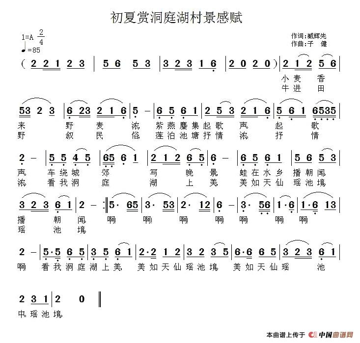 关于《初夏赏洞庭湖村景感赋》曲谱的评论