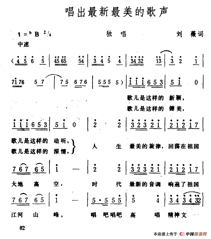 关于《唱出最新最美的歌声》曲谱的评论