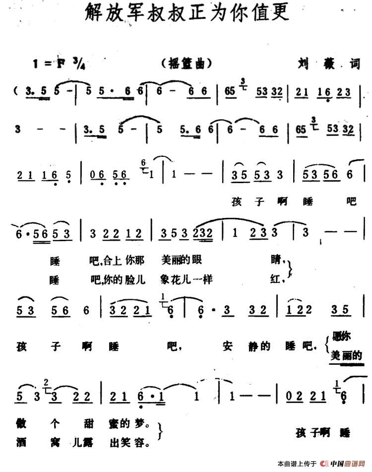 关于《解放军叔叔正为你值更》曲谱的评论