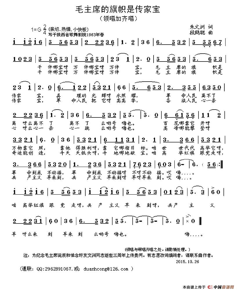 关于《毛主席的旗帜是传家宝》曲谱的评论
