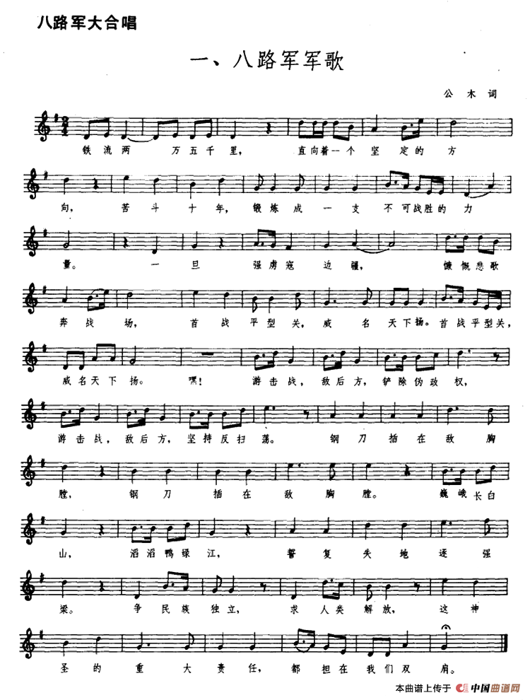 关于《八路军大合唱一、八路军军歌》曲谱的评论