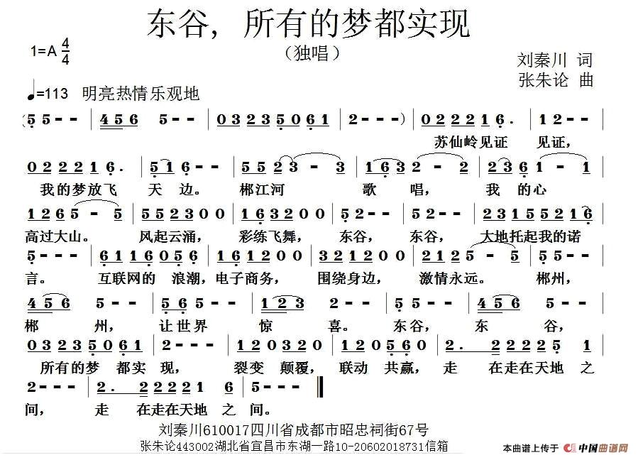 关于《东谷,所有梦想都实现》曲谱的评论