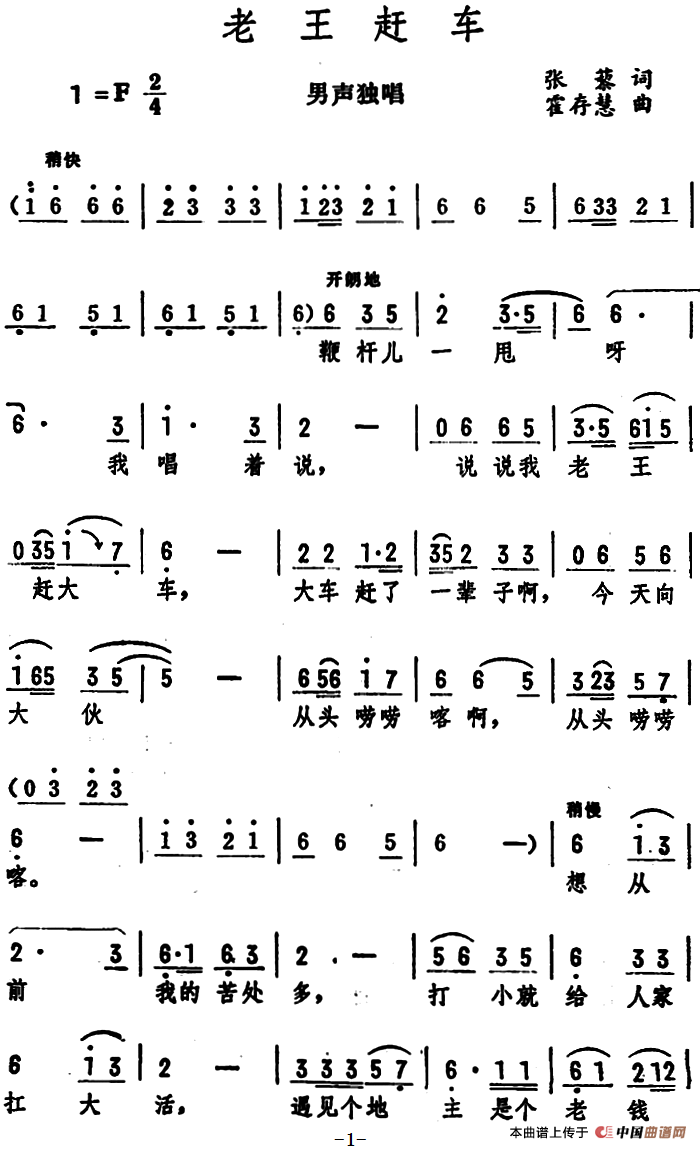 关于《老王赶车》曲谱的评论
