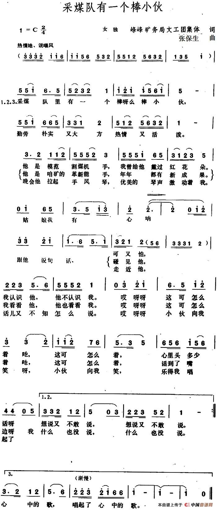 关于《采煤队有一个棒小伙 》曲谱的评论