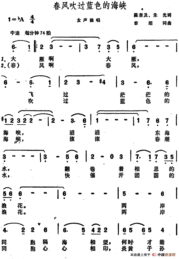 关于《春风吹过蓝色的海峡》曲谱的评论