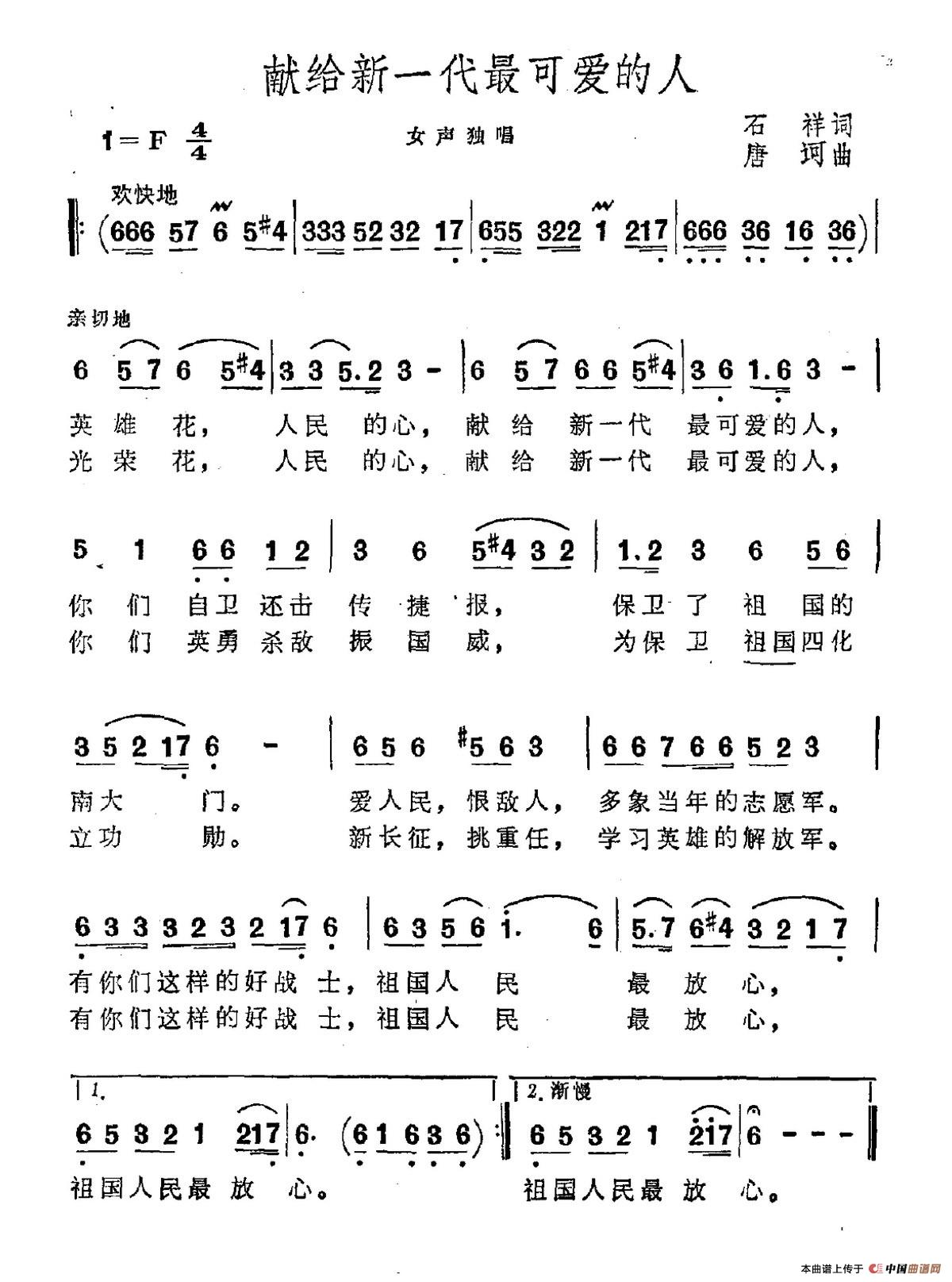 关于《献给新一代最可爱的人》曲谱的评论