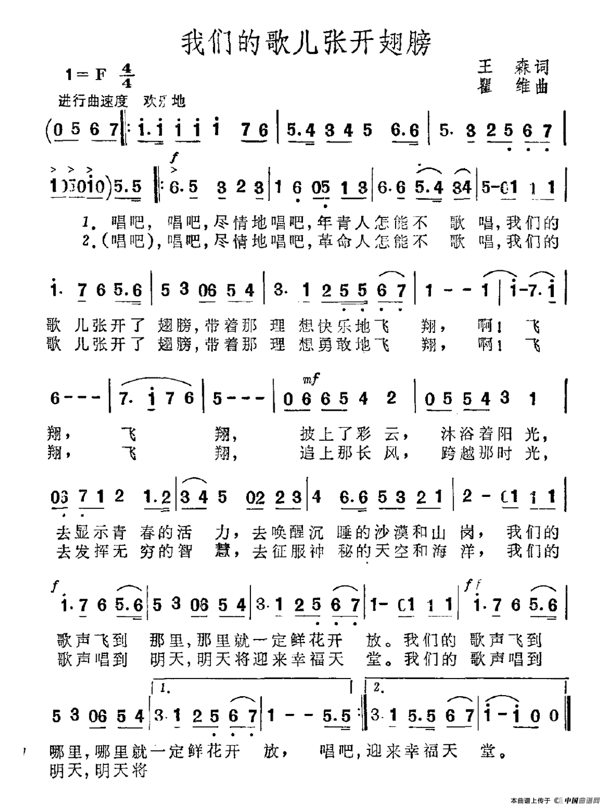 关于《我们的歌儿张开翅膀》曲谱的评论