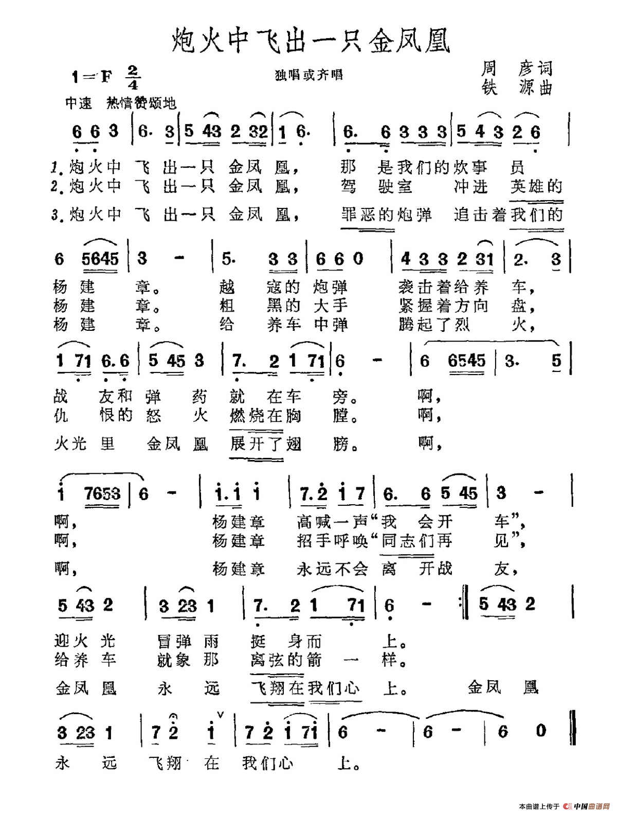 关于《炮火中飞出一只金凤凰》曲谱的评论