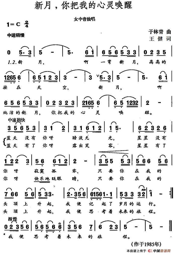 关于《新月,你把我的心灵唤醒》曲谱的评论
