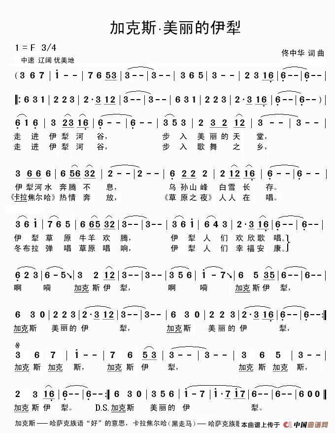 关于《加克斯·美丽的伊犁》曲谱的评论