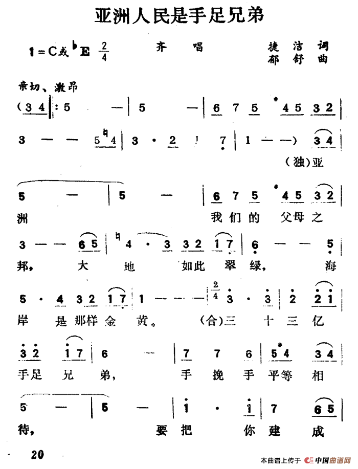 关于《亚洲人民是手足兄弟》曲谱的评论