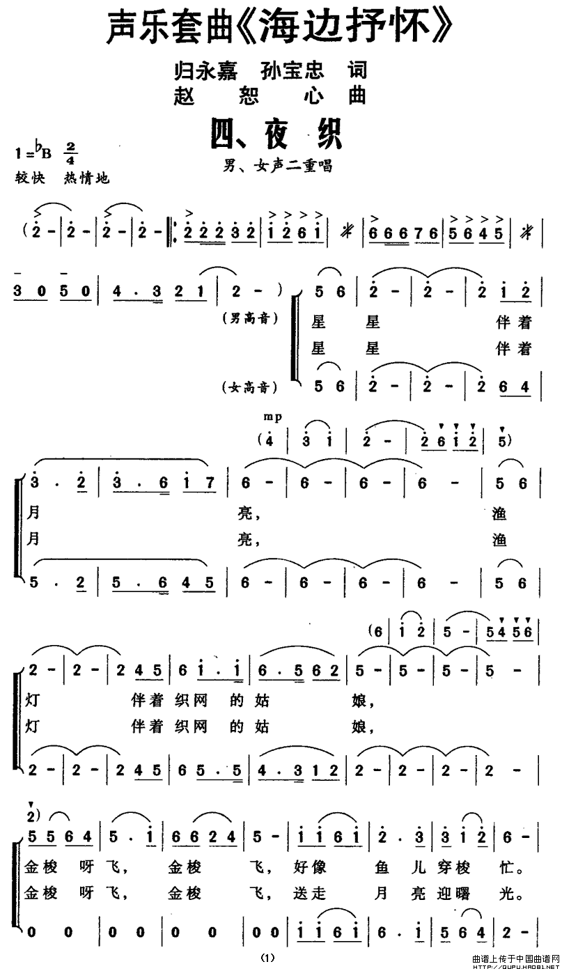 关于《声乐套曲《海边抒怀》四、夜织》曲谱的评论
