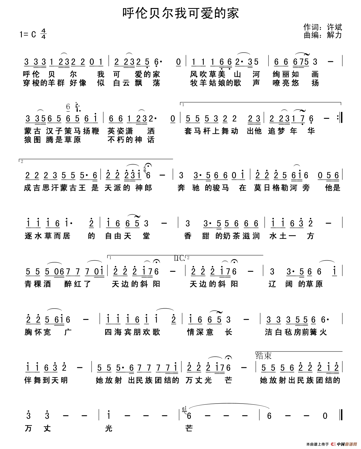 关于《呼伦贝尔我可爱的家 》曲谱的评论