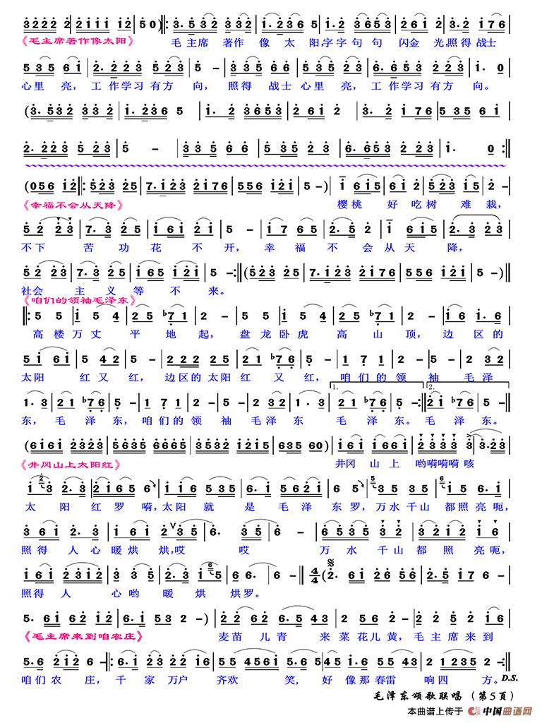 天上太阳红呀红彤彤哎,心中的太阳是毛泽东哎,他领导我们得解放哎,人民翻身当家作主人,咿呀咿子哟喂,呀儿呀子哟啊,人民翻身当家作主人。