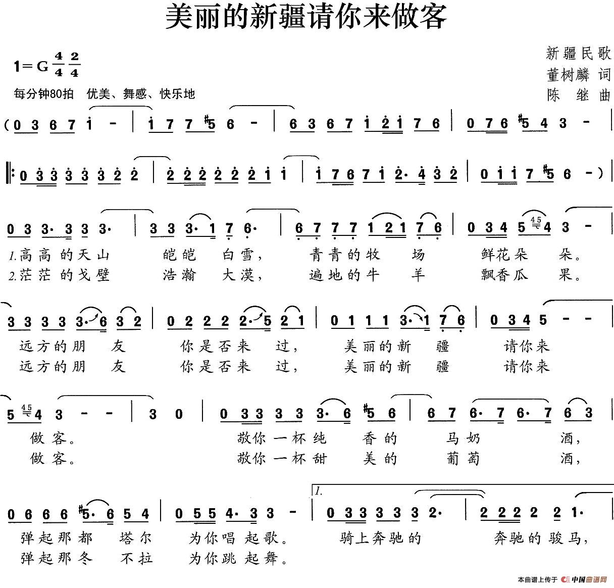 关于《美丽的新疆请你来做客》曲谱的评论