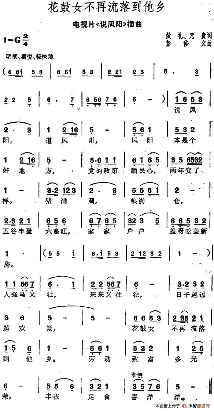 关于《花鼓女不再流落到他乡》曲谱的评论