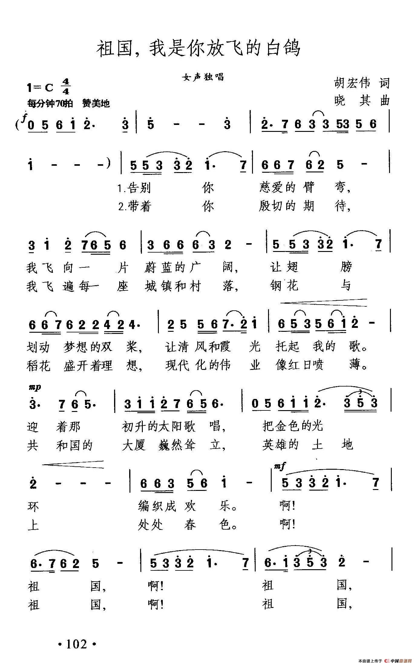 关于《祖国,我是你放飞的白鸽》曲谱的评论