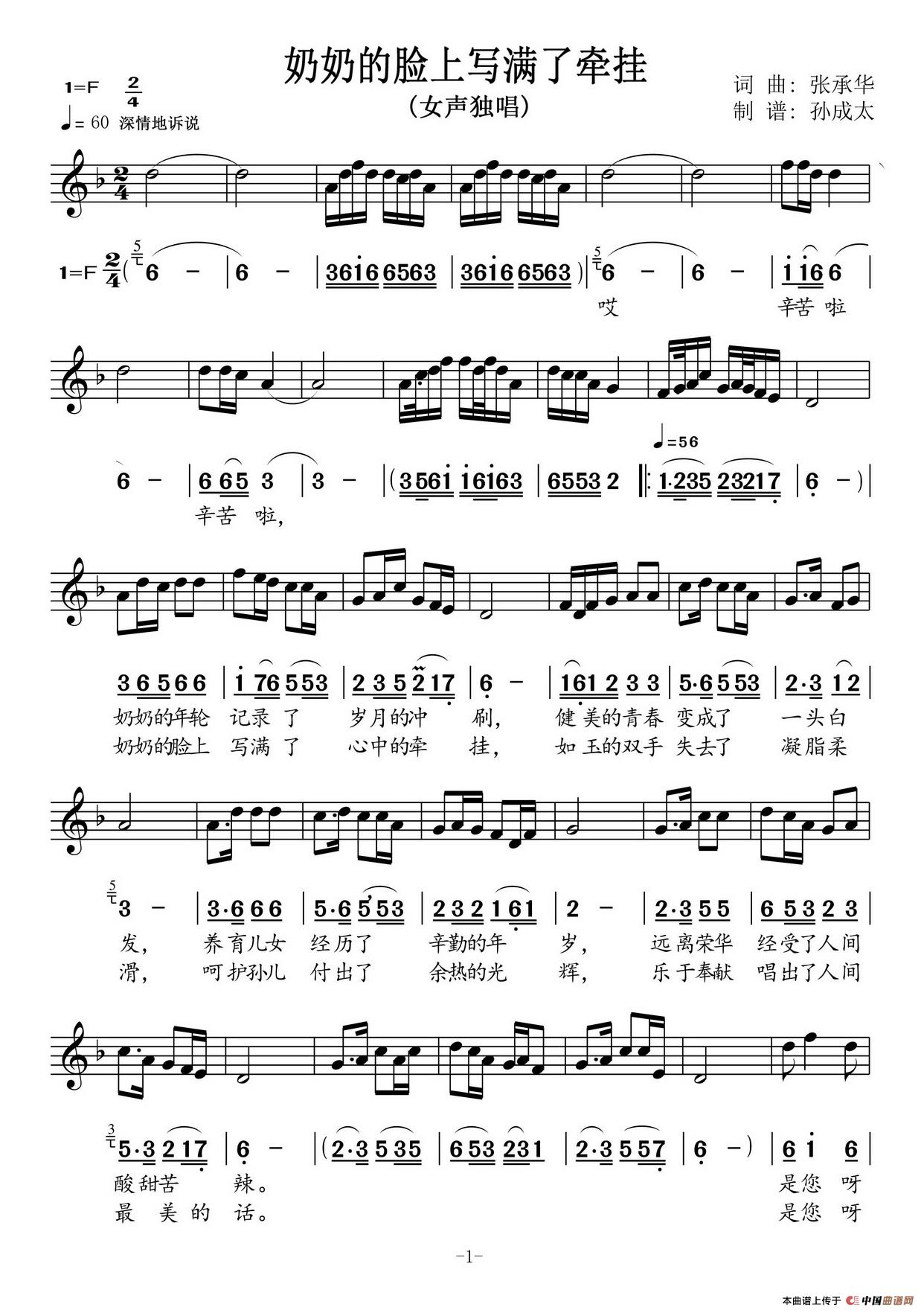 关于《奶奶脸上写满了牵挂》曲谱的评论