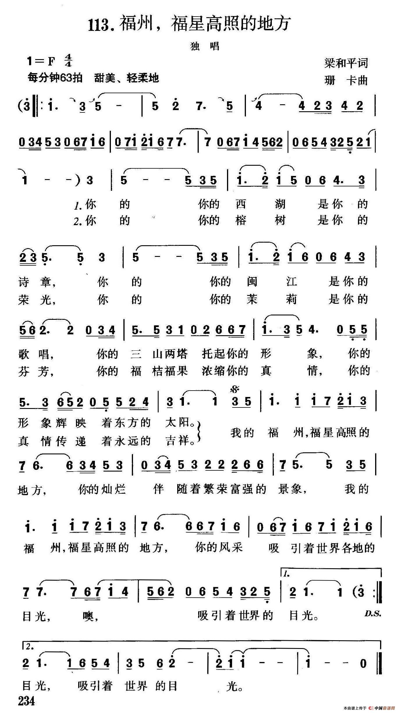 致谢:《中国曲谱网》衷心感谢作者老师馈赠原版歌谱!