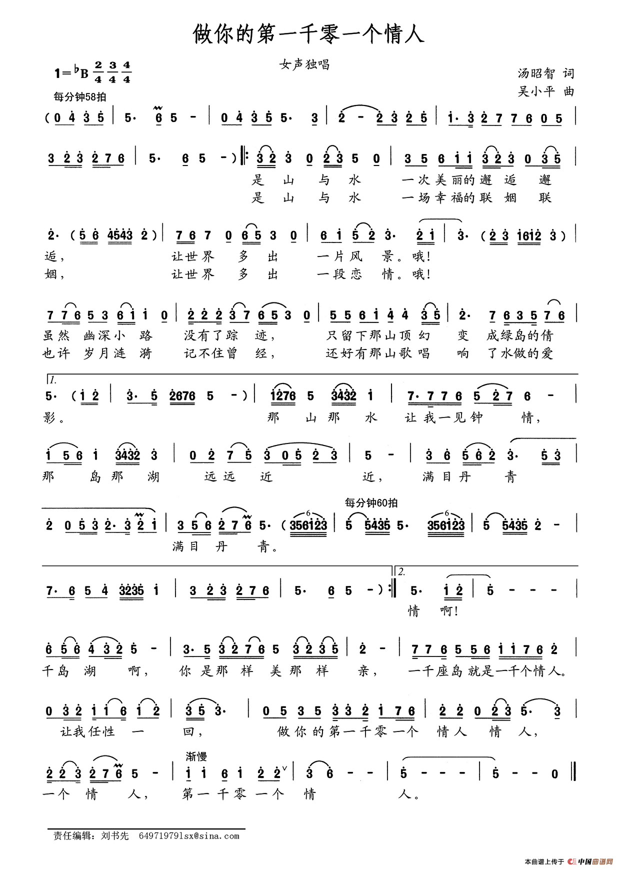 致谢:《中国曲谱网》衷心感谢作者老师馈赠原版歌谱!