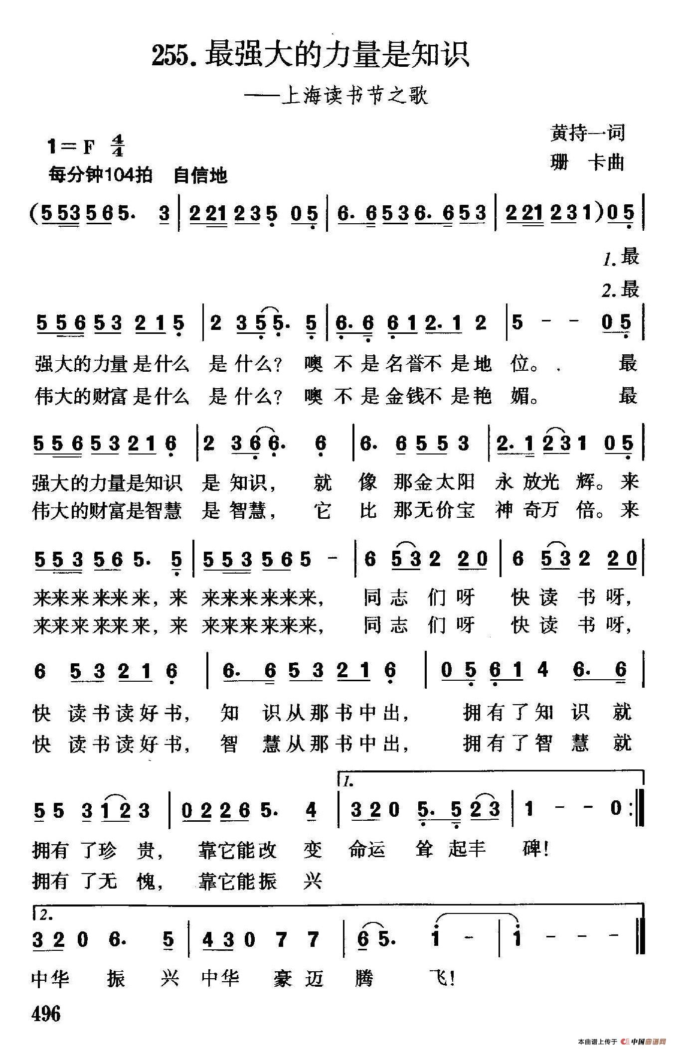 255.最强大的力量是知识(上海读书节之歌)