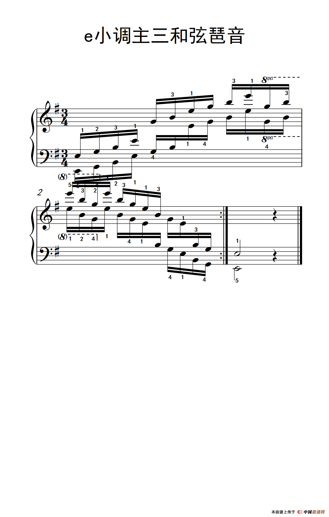 第六级 20.e小调主三和弦琶音(中央音乐学院 钢琴(业余)考级教程 4-6级)