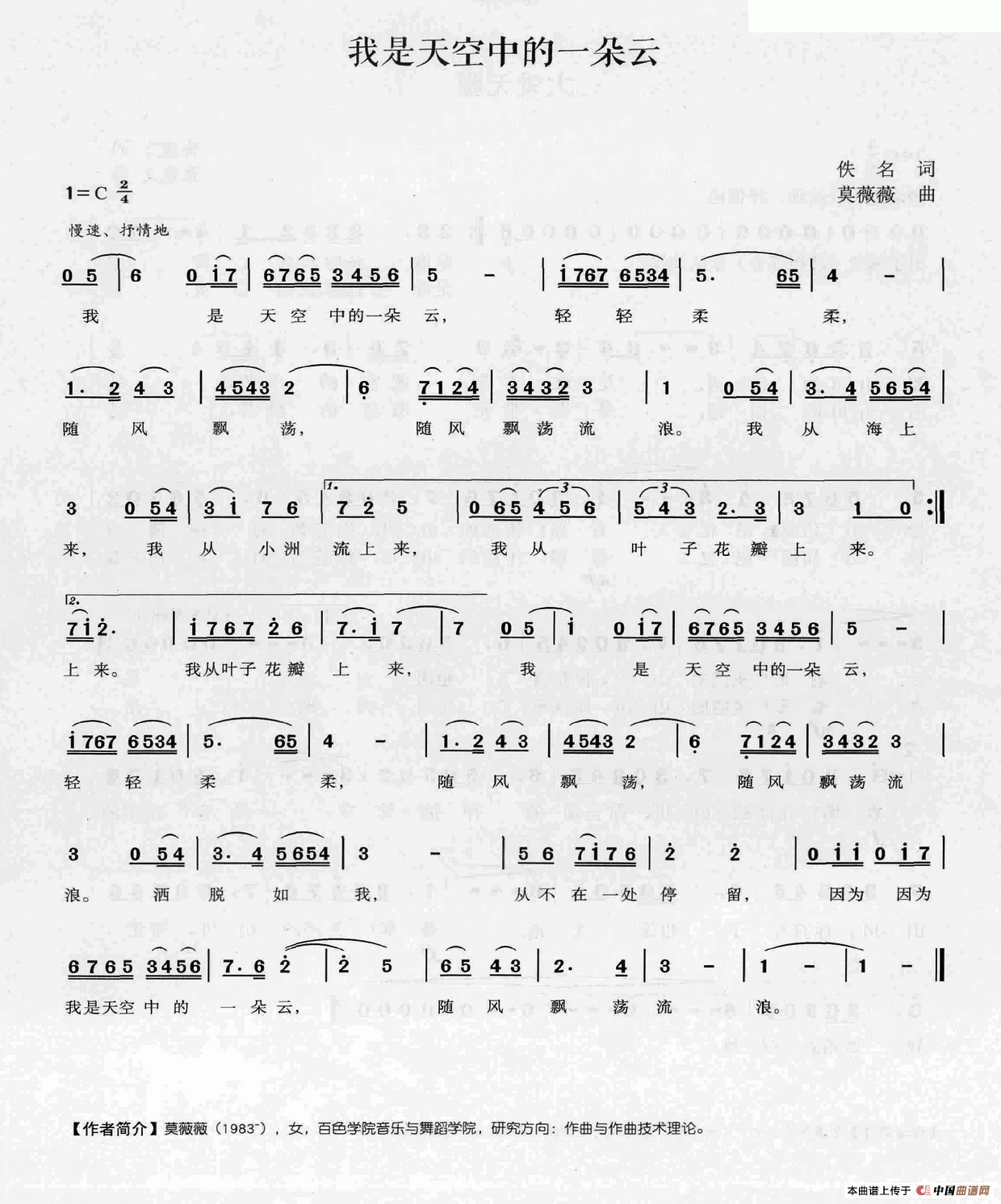 关于《我是天空中的一朵云》曲谱的评论