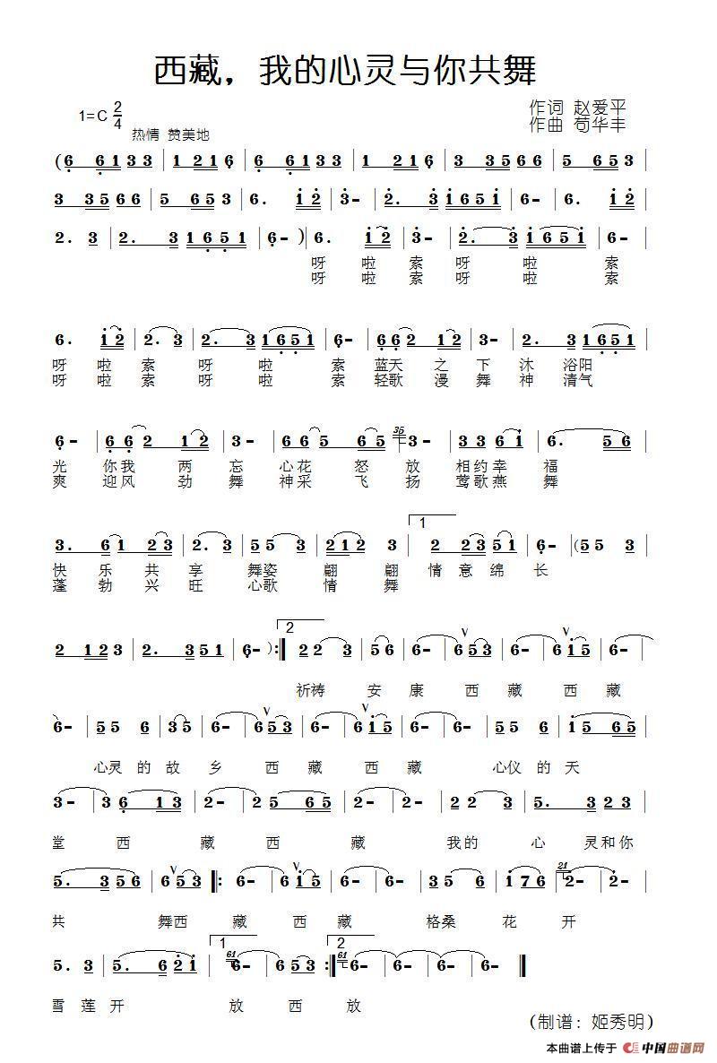 关于《西藏 我的心灵与你共舞》曲谱的评论