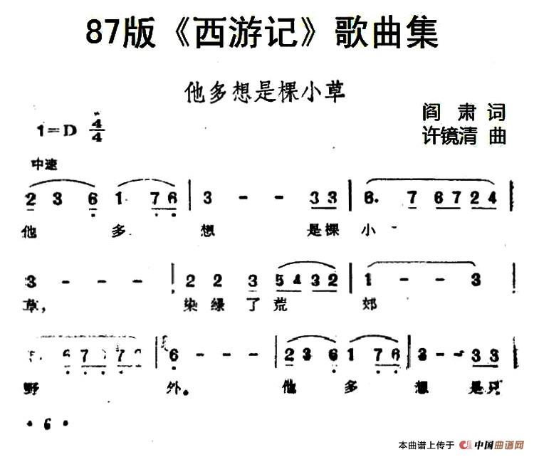 关于《87版《西游记》歌曲集:他多想是棵小草》曲谱的评论