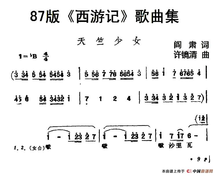 关于《87版《西游记》歌曲集:天竺少女》曲谱的评论