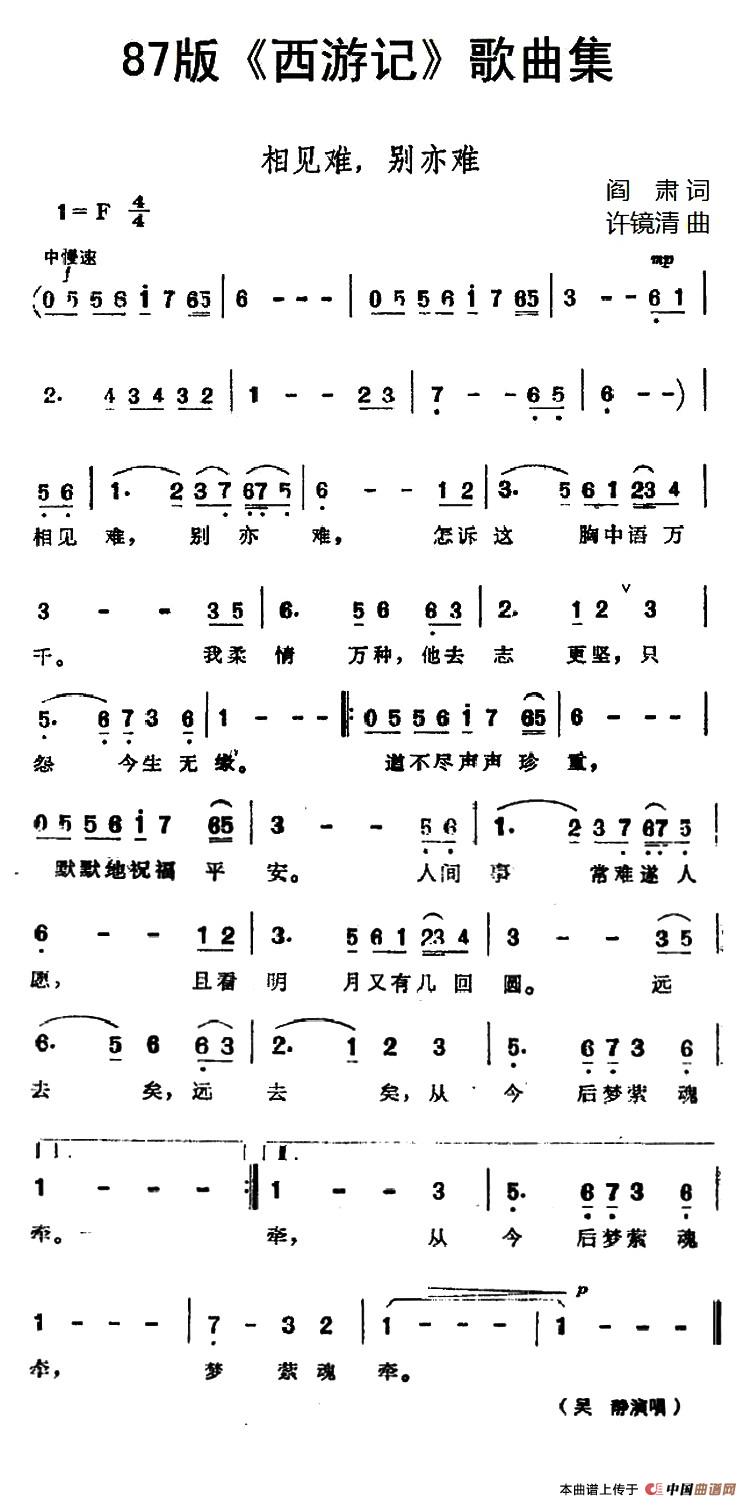 关于《87版《西游记》歌曲集:相见难,别亦难》曲谱的评论