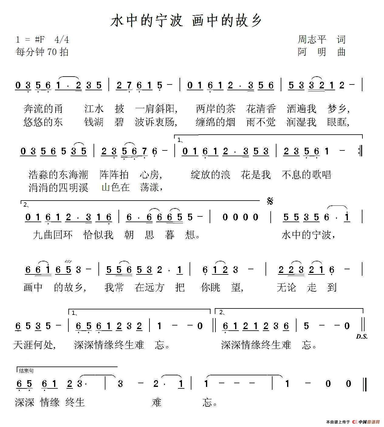 关于《水中的宁波 画中的故乡》曲谱的评论