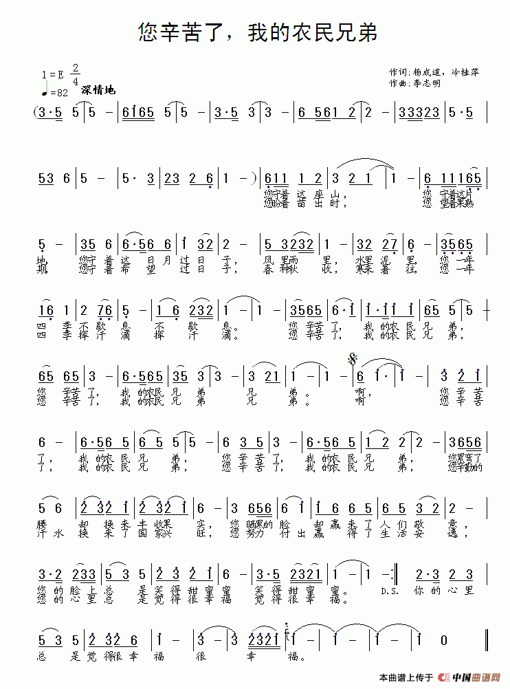 关于《您辛苦了,我的农民兄弟》曲谱的评论