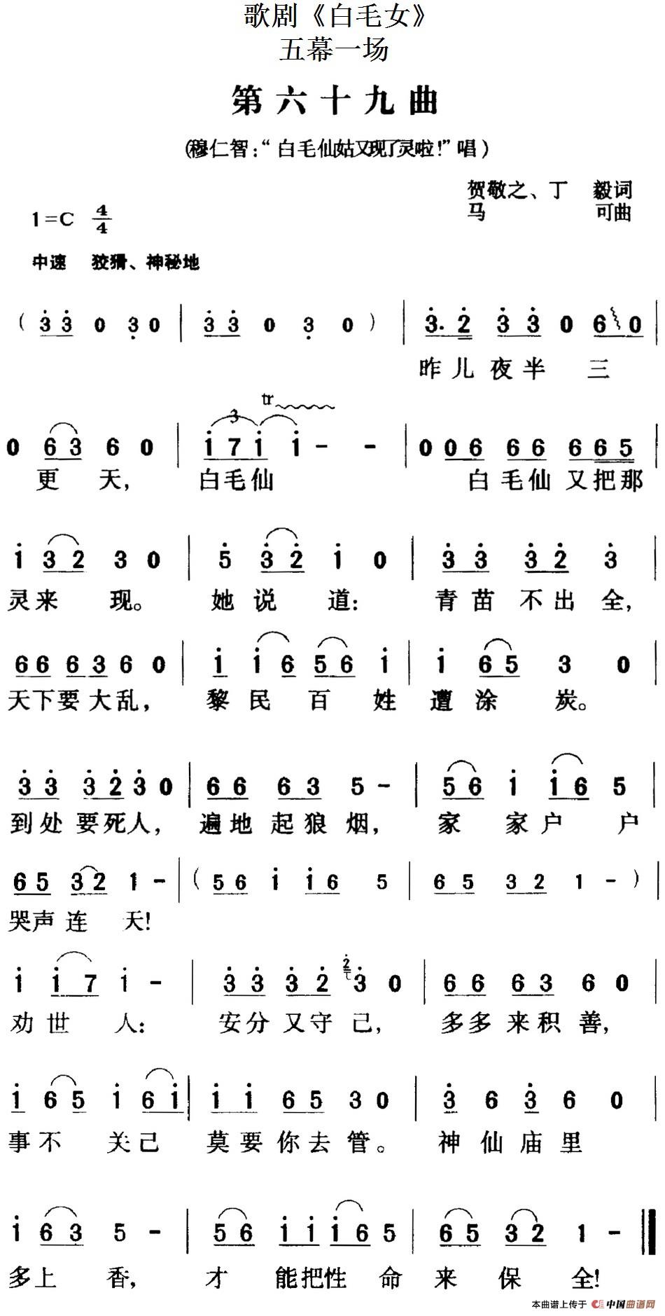 关于《歌剧《白毛女》全剧之第六十九曲》曲谱的评论