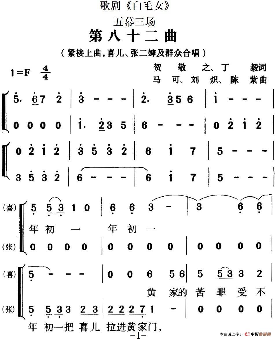关于《歌剧《白毛女》全剧之第八十二曲》曲谱的评论