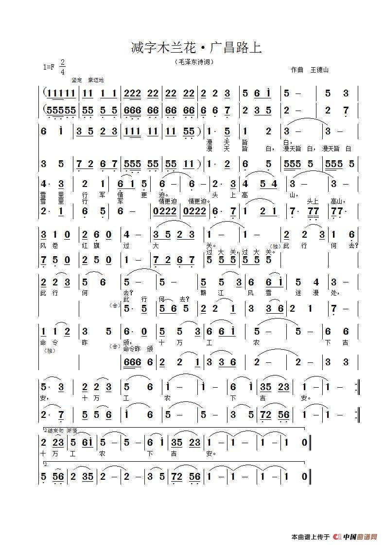今年的12月26日是毛泽东诞辰123周年纪念日,2016年是中国工农红军长征胜利80周年,在这样特殊的年份里,迎来了伟大领袖毛主席的生日,我们更应该缅怀毛主席的丰功伟绩,更应该吟诵毛主席关于长征的诗词。《减字木兰花·广昌路上》是一首长征路上的豪迈诗篇,为纪念他老人家诞辰123周年,为他的诗词谱曲,谨表达我的无比崇敬和无限怀念之情。 [回复]