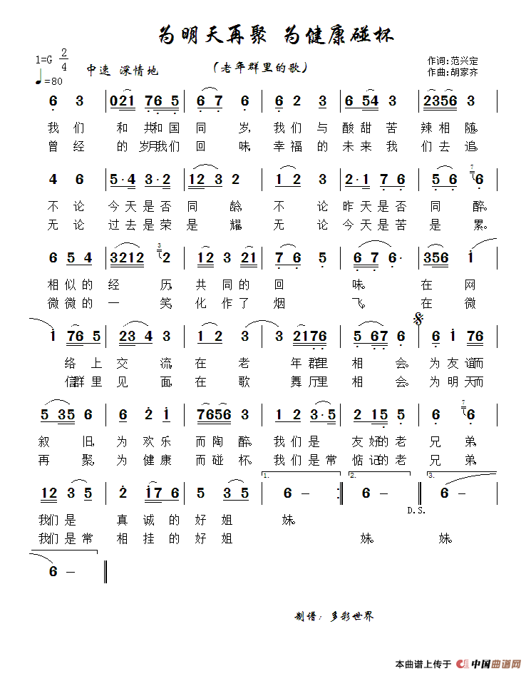 关于《为明天再聚为健康碰杯》曲谱的评论