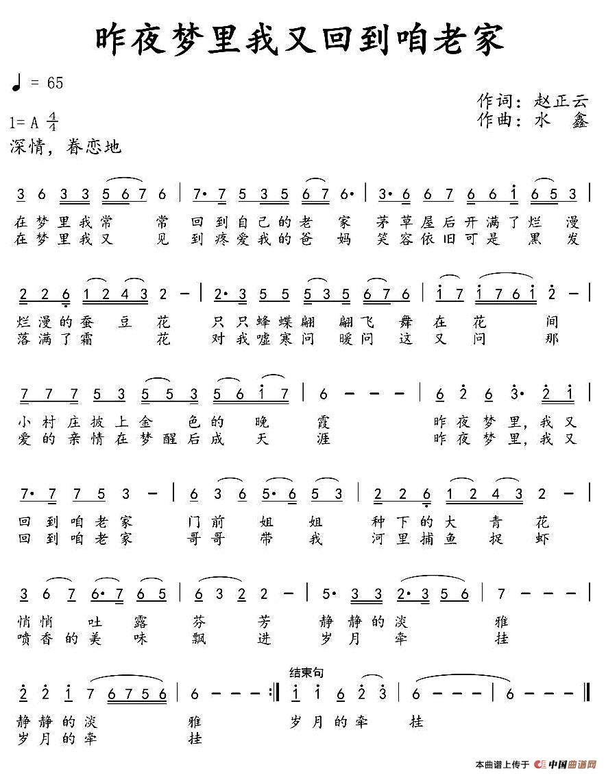 关于《昨夜梦里我又回到咱老家》曲谱的评论