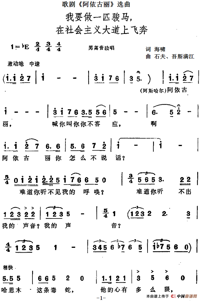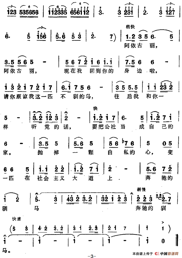 关于《我要做一匹骏马,在社会主义大道上飞奔》曲谱的评论