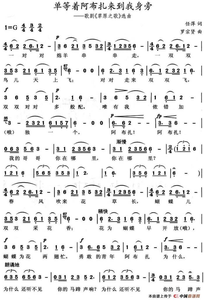 关于《单等着阿布扎来到我身旁》曲谱的评论