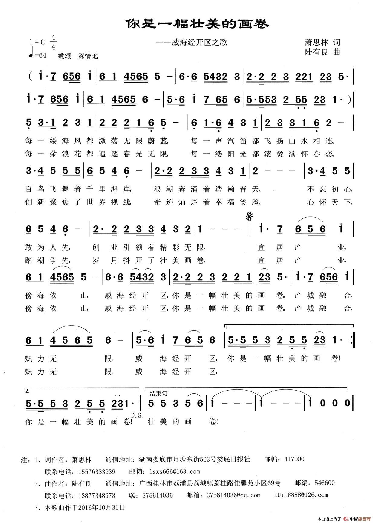 提示:在曲谱图片上单击右键,选择“图片另存为...”即可将曲谱保存到您的电脑中,打印时候可将图片插入到WORD中,调整合适大小打印即可。