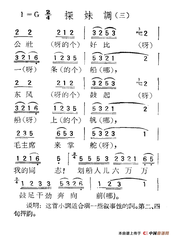 来源:选自《苏北小调常用曲调》 上传:沉舟侧畔过