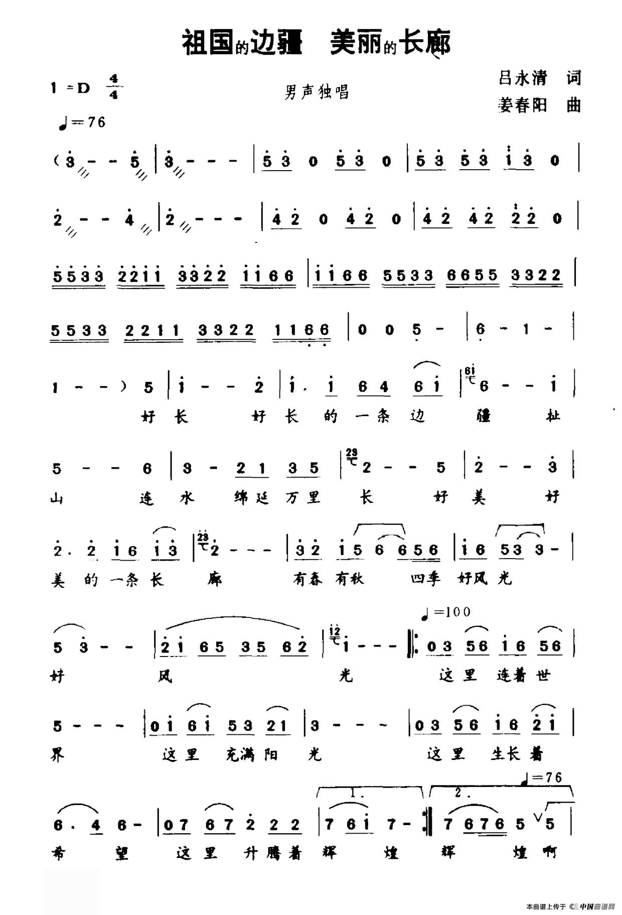 关于《祖国的边疆 美丽的长廊》曲谱的评论