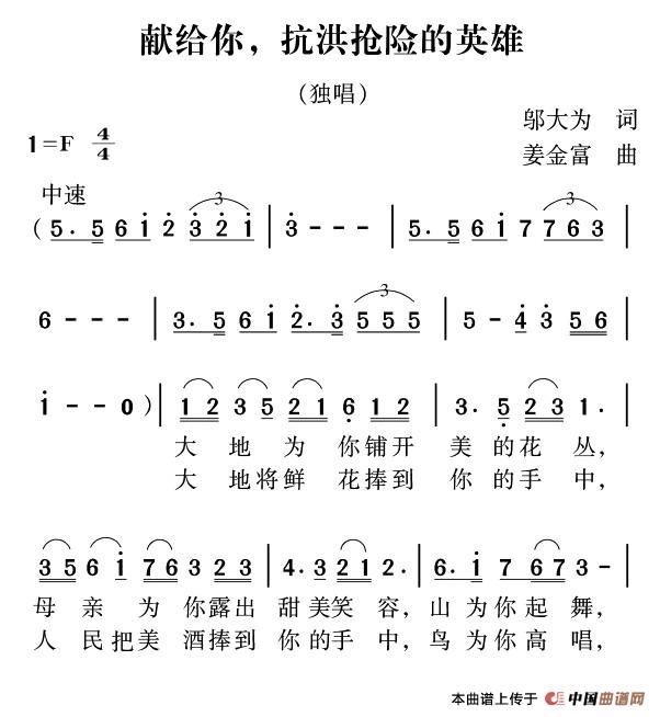 关于《先给你,抗洪抢险的英雄》曲谱的评论